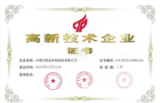 內蒙古歐晶科技股份有限公司作為自治區(qū)2022年度首家深交所主板上市(股票簡稱:歐晶科技 股票代碼:001269)的國家級高新技術企業(yè),成立于2011年4月,位于內蒙古呼和浩特市賽罕區(qū),公司立足于單晶硅材料產業(yè)鏈,主要為太陽能級單晶硅棒硅片的生產和輔助材料資源回收循環(huán)利用,提供配套產品及服務,具體包括石英坩堝產品、硅材料清洗服務、切削液處理服務。下設五家全資子公司,分別分布于天津市、無錫市、寧夏等地。服務理念:始于客戶需求,終于客戶滿意經營...